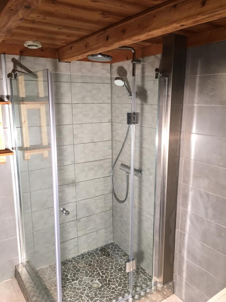 1 chambre avec 1 lit 2 pers ( 140 ) et 1 lit 1 pers (90), Salle d'eau neuve ( douche, lavabo, wc, lave linge). Chauffage : électrique + cheminée + poele à bois.